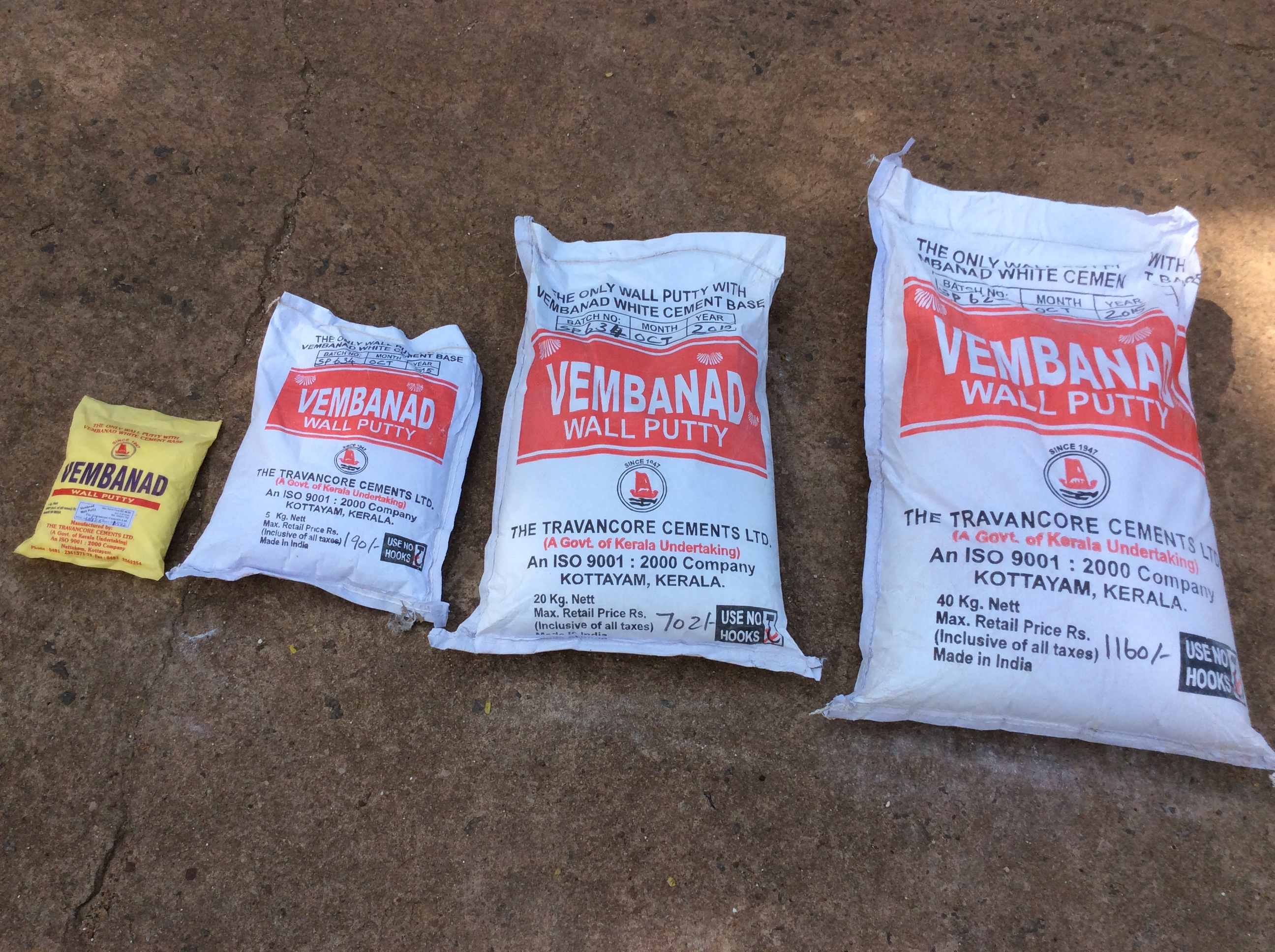 Ensure that surface is totally clean. The surface should be moderately rough and in just wet condition. Apply 1 st coat of VEMBANAD wall putty using a blade on the wall with a bottom to up configuration. Apply 2nd coat of VEMBANAD wall putty preferably after 10 hours in summers and 12 hrs in winters. Make sure that the wall is perfectly dried before applying second coat. Second coat shall be applied horizontally to even out application marks of 1st coat, if any. The total thickness of the coats should be limited to maximum 1.5 mm. Always prepare a required quantity of putty and use it within 2-3 hrs of mixing with water. Allow complete drying for 3 days and then use a fine emery paper (not less than 500 numbers) to remove application marks, if any.